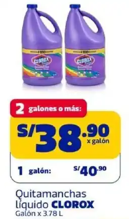 | Clorox quitamanchas líquido galón 3.78 L | Makro | S/ 38.90 | 02 enero 2026 | 14 enero 2026 | |||