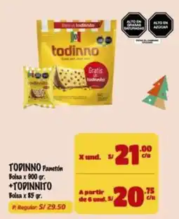 | Panetón Todinno x 900g + Todinnito x 85g con Fruta Confitada | Tottus | S/ 30.90 | 14 octubre 2022 | 30 octubre 2022 |