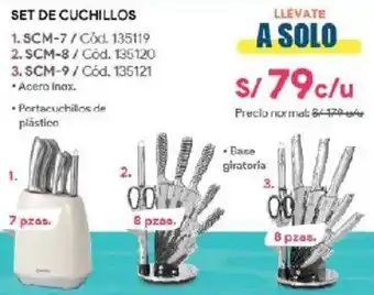 Esta oferta está disponible en una gran variedad de tiendas, echa un vistazo a todos los productos y obtén el precio más bajo de Set de cuchillos SCM-7 . Si quieres averiguar si este mismo producto tiene un mayor descuento en otra tienda, consulta la categoría 'Electrónica'. También estas otras ofertas podrían resultarte de interés: Set de cuchillos SCM-6, Secadoras de cabello profesional SCM-25A y Set de cubiertos SCAM-24.