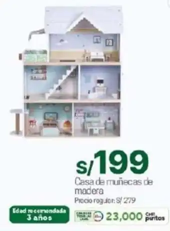 | Casa de muñecas de madera | Tottus | S/ 199.00 | 07 diciembre 2023 | 24 diciembre 2023 | |||